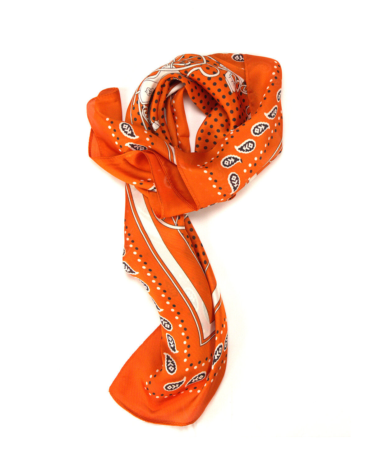 This beautiful scarf is an irresistible accessory for all who love and admire the noble horse. Crafted from silk blend, it features a majestic horse print. Wear it as a neckerchief, or drape it across the shoulder.