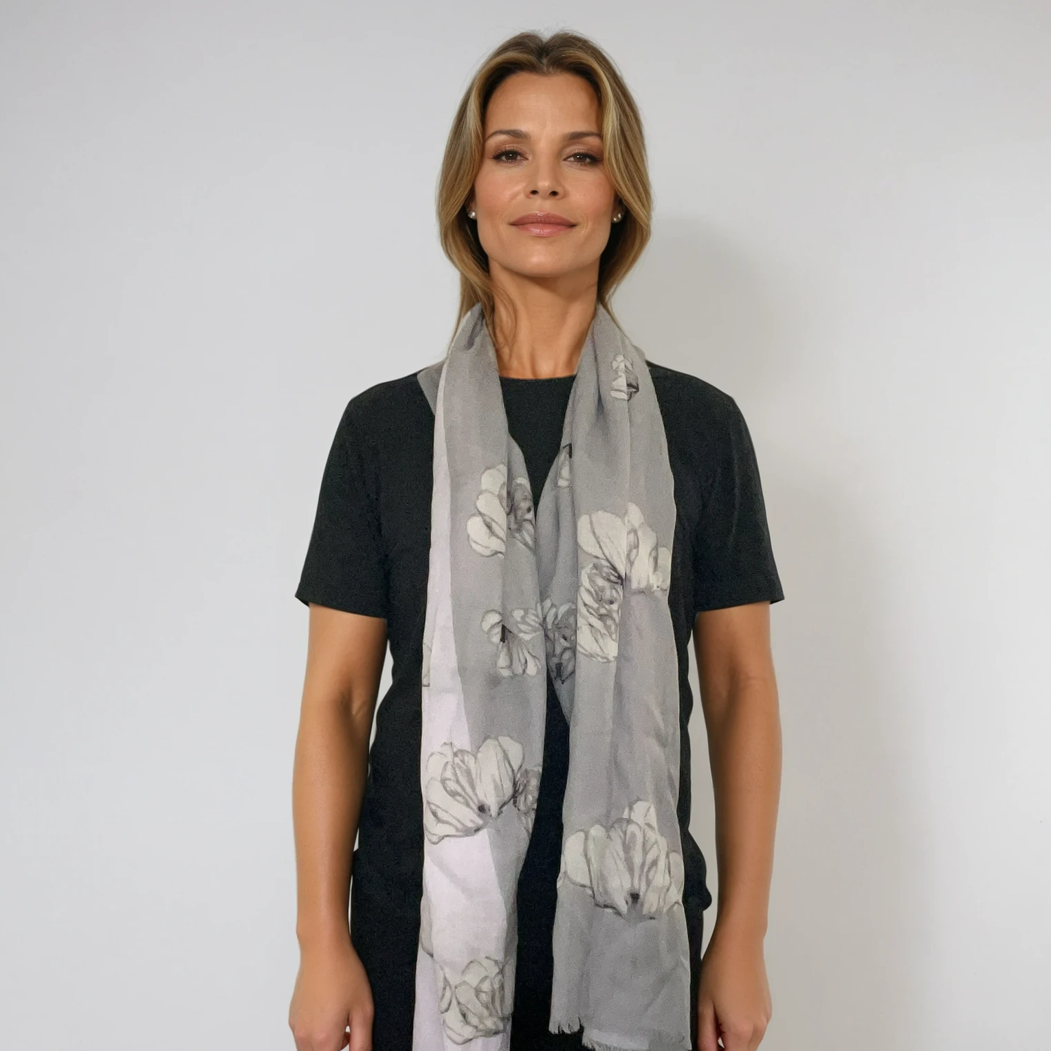 Soft yet substantial, Olivia provides warmth without bulk and drapes naturally around the neck or shoulders. The neutral palette makes it easy to pair with both casual and polished looks, while the floral motif adds a gentle, feminine touch.