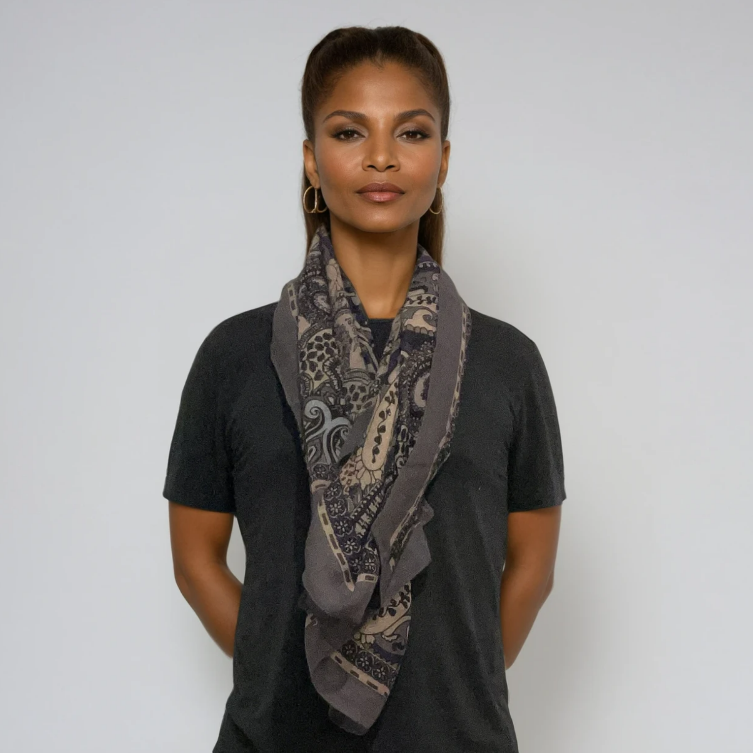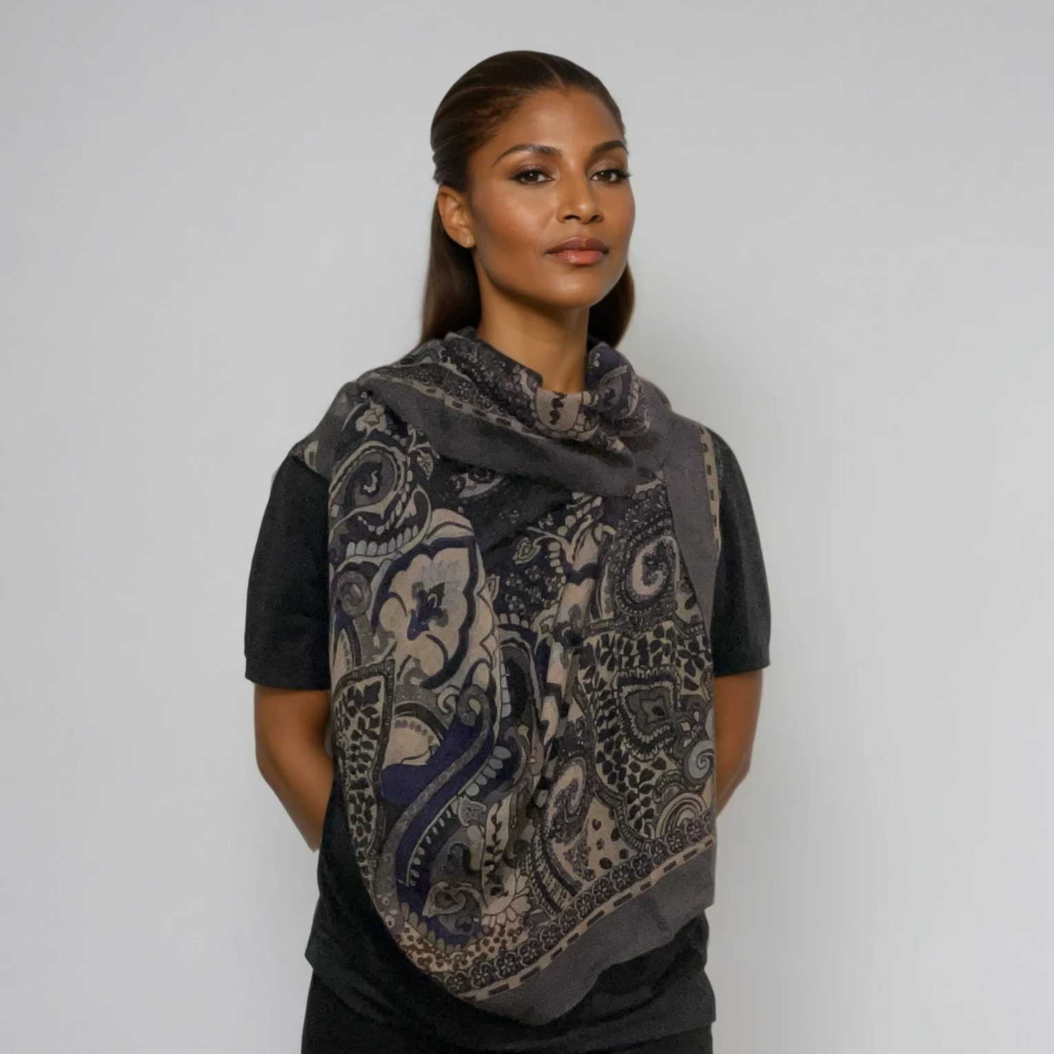 The Talon scarf combines timeless design with modern versatility. Made from 100% lightweight wool, it offers soft warmth without bulk, making it ideal for any season. Its tan-and-black paisley pattern adds subtle sophistication, giving a classic twist to contemporary style.