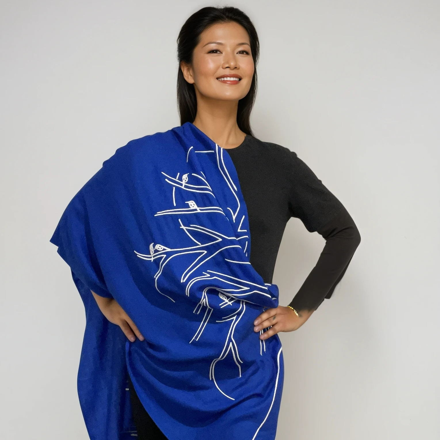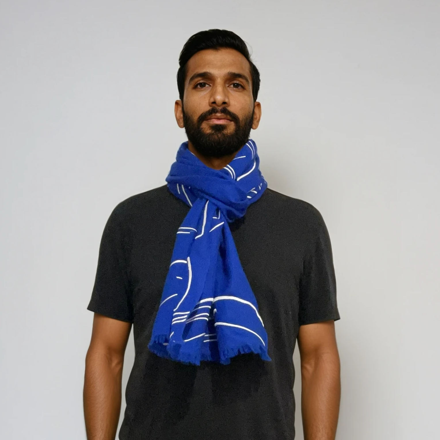 A rich royal blue ground is accented with a refined tree motif in white piping, creating a striking yet balanced design. The pattern adds visual depth while maintaining a clean, graphic sensibility. Unisex in design, Ulric brings a sense of structure and quiet sophistication to both casual and polished wardrobes.